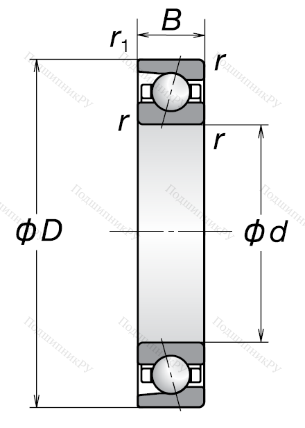 Однорядный шариковый подшипник 7014 A (46114 Л ГОСТ)