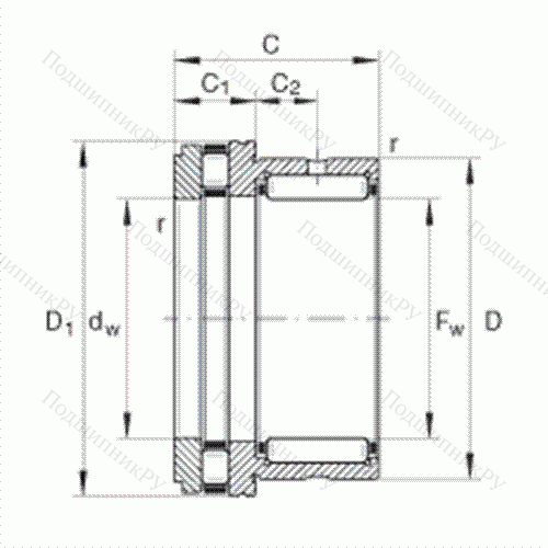 Подшипник комбинированный с короткими цилиндрическими и игольчатыми роликами NKXR 20
