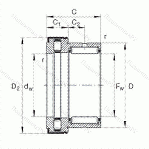 Подшипник комбинированный с короткими цилиндрическими и игольчатыми роликами NKXR 40-Z