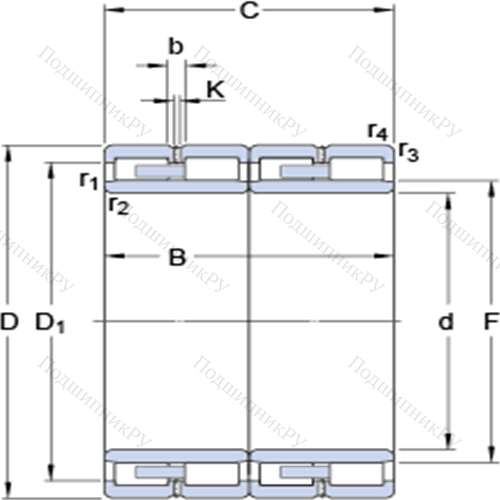 Четырёхрядные цилиндрические роликоподшипники 239509 FA