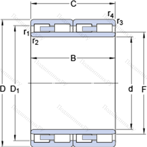 Четырёхрядные цилиндрические роликоподшипники 314385