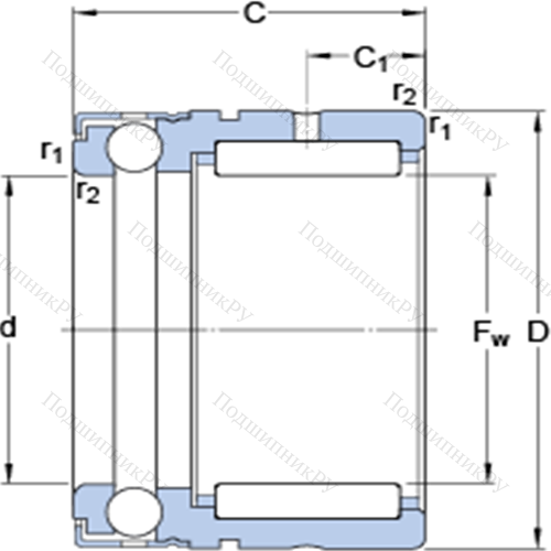 Комбинированные упорные шарикоподшипники с игольчатыми роликами NX 30