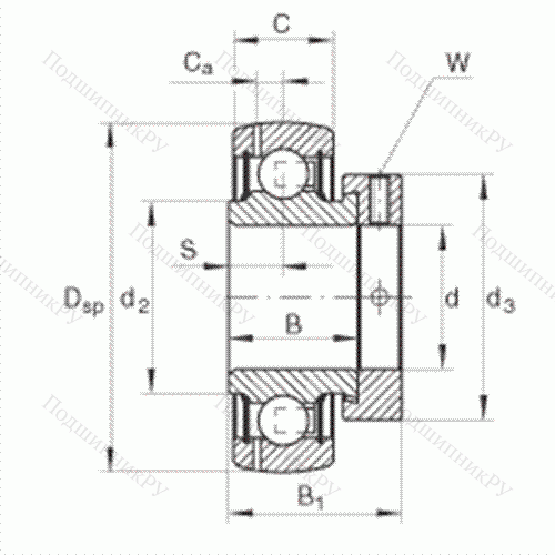 сферическое наружное кольцо, фиксация эксцентриковым закрепительным кольцом, двусторонние P-уплотнения, с защитой от коррозии