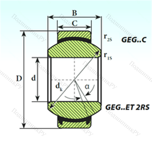 Подшипник скольжения сферический GEG 17 C конструкция которого представлена внешним кольцом, внутри вращается внутренняя обойма. Существуют прямые, шарнирные (самовыравнивающиеся), угловые, гидравлические, двойные шарикоподшипниковые и роликоподшипниковые варианты исполнения. Отдельные разновидности изделий (с парой трения «сталь – сталь») нуждаются в обслуживании и имеют каналы для подачи смазки, в то время как другие не нуждаются в ТО. В первом случает система включает в себя пару стальных шин, обработанную предварительно фосфатами и дисульфитом молибдена. Необслуживаемые модели покрываются политетрафторэтиленом, армируются медью и дополнительно усиливаются хромом.