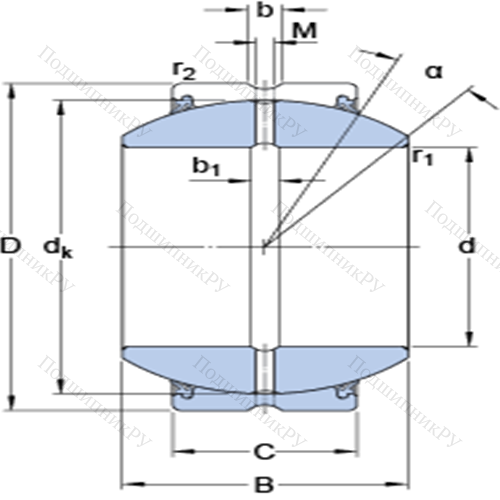 Радиальные сферические подшипники скольжения с контактными поверхностями сталь/сталь, требующие техобслуживания GEH 25 ES-2RS конструкция которого представлена внешним кольцом, внутри вращается внутренняя обойма. Существуют прямые, шарнирные (самовыравнивающиеся), угловые, гидравлические, двойные шарикоподшипниковые и роликоподшипниковые варианты исполнения. Отдельные разновидности изделий (с парой трения «сталь – сталь») нуждаются в обслуживании и имеют каналы для подачи смазки, в то время как другие не нуждаются в ТО. В первом случает система включает в себя пару стальных шин, обработанную предварительно фосфатами и дисульфитом молибдена. Необслуживаемые модели покрываются политетрафторэтиленом, армируются медью и дополнительно усиливаются хромом.