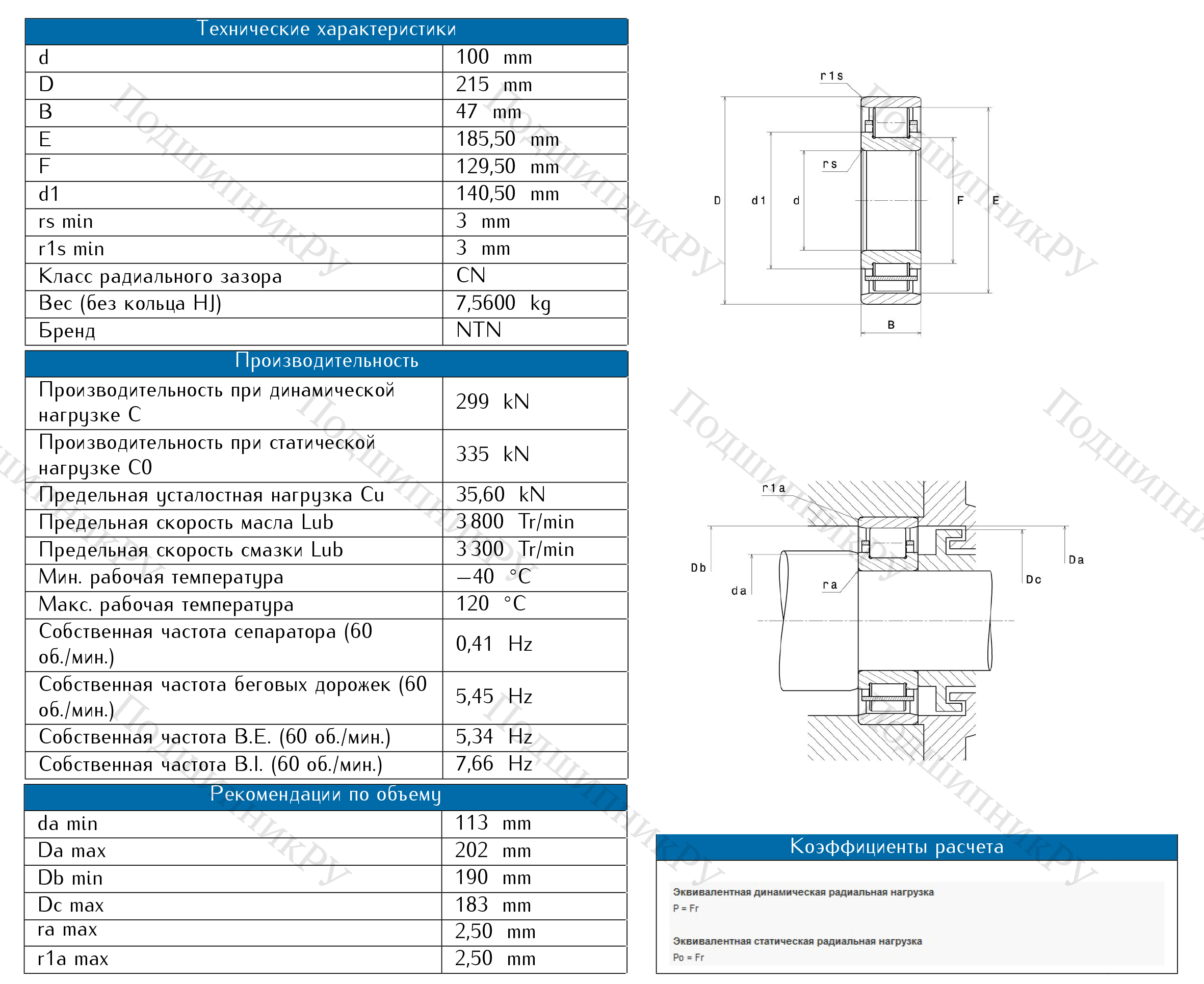 Какая эксплуатационная характеристика Роликовый цилиндрический подшипник N 320 определяет сферу его использования?