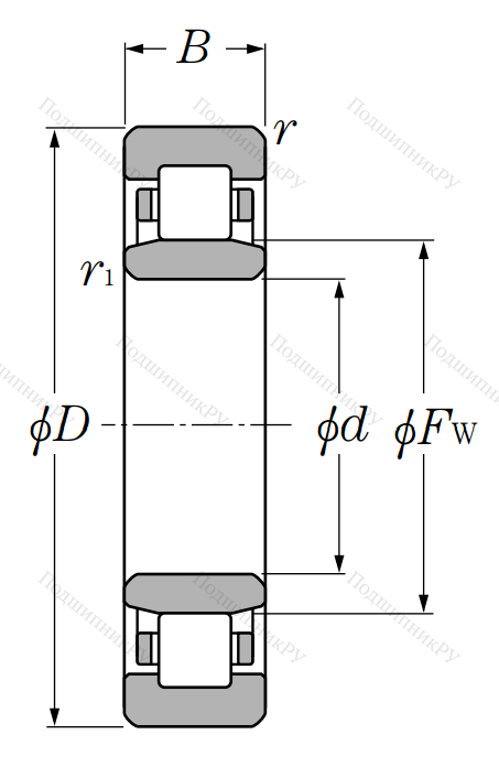 Роликовый цилиндрический подшипник NU 312, это разновидность однорядного роликоподшипника в метрическом исполнении.