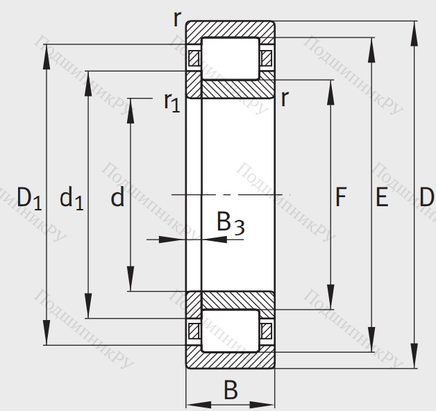 Роликовый цилиндрический подшипник NUP 2206 E XL TVP2 относится к группе однорядных цилиндрических роликоподшипников. Конструктивно состоит из: