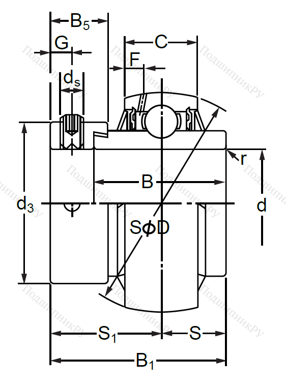 - В отличие от стандартных моделей типа UC, обладает центровочной втулкой, поставляющейся в комплекте.