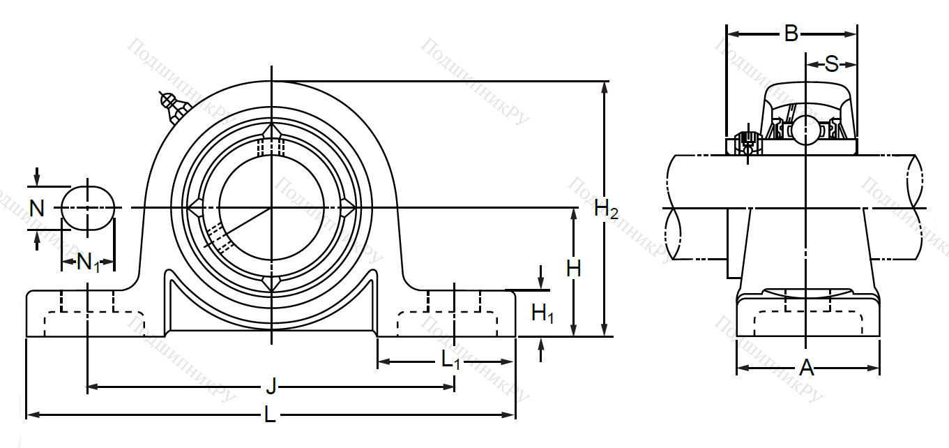 Конструкция, служащая гнездом для удержания подшипника и его установки на поверхности опоры. Может быть обслуживаемой или необслуживаемой. Крепление происходит при помощи одного или нескольких болтов. Встречаются разновидности овальной, квадратной, ромбовидной, Т-образной и круглой форм.