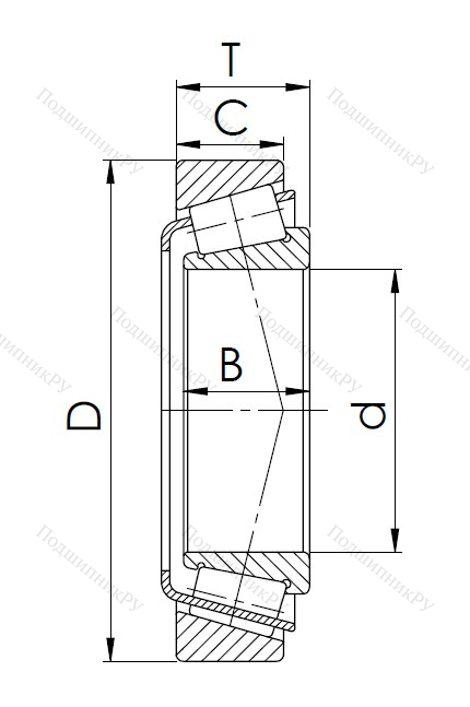 Строение данного типа детали состоит из сепаратора, роликов, а также двух колец, располагающихся снаружи и внутри. Отличительной чертой механизма является конусовидная форма роликов, удерживаемых ободом кольца, благодаря чему они могут одновременно воспринимать сочетание осевых и радиальных нагрузок.